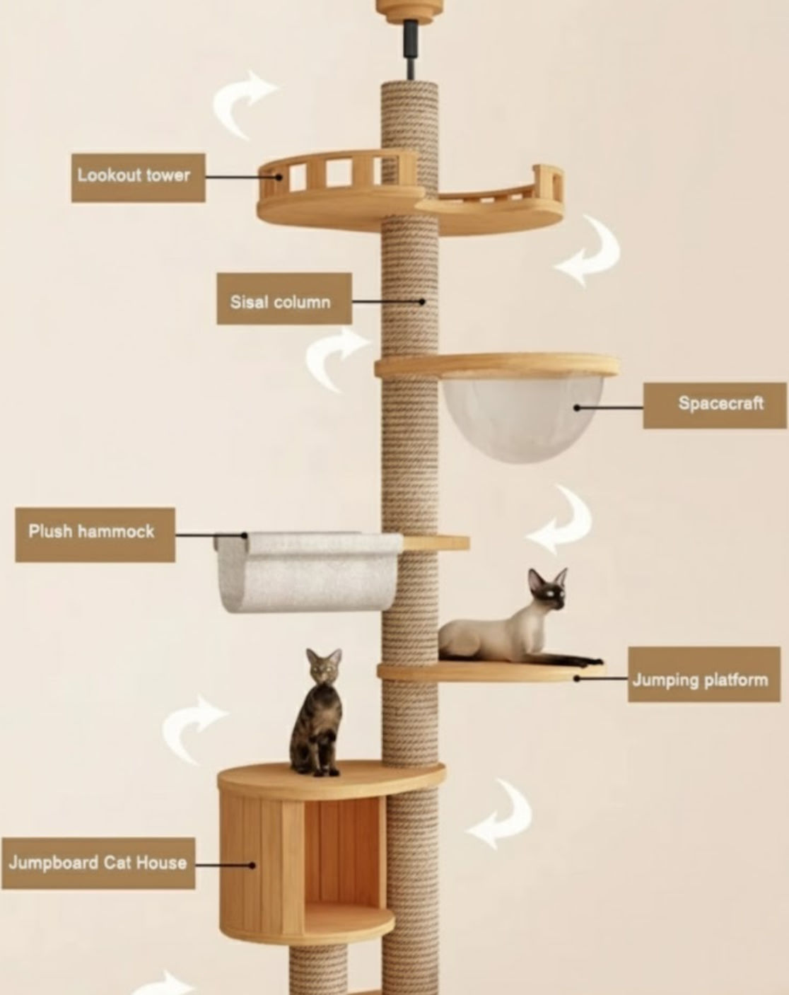 Arbre à Chat Élégance Verticale - Maison ajustable du sol au plafond