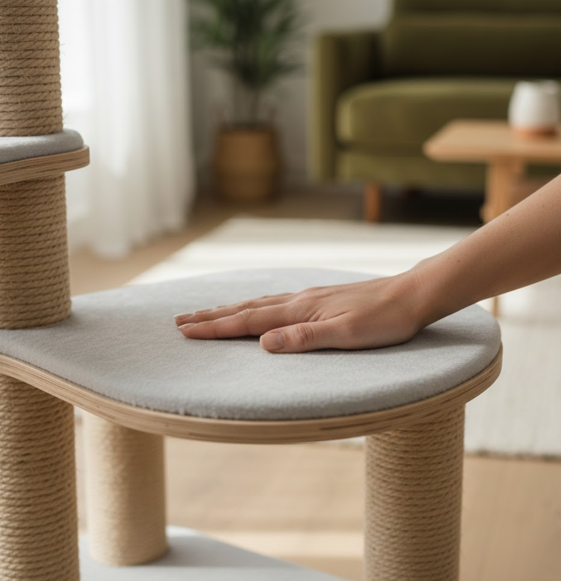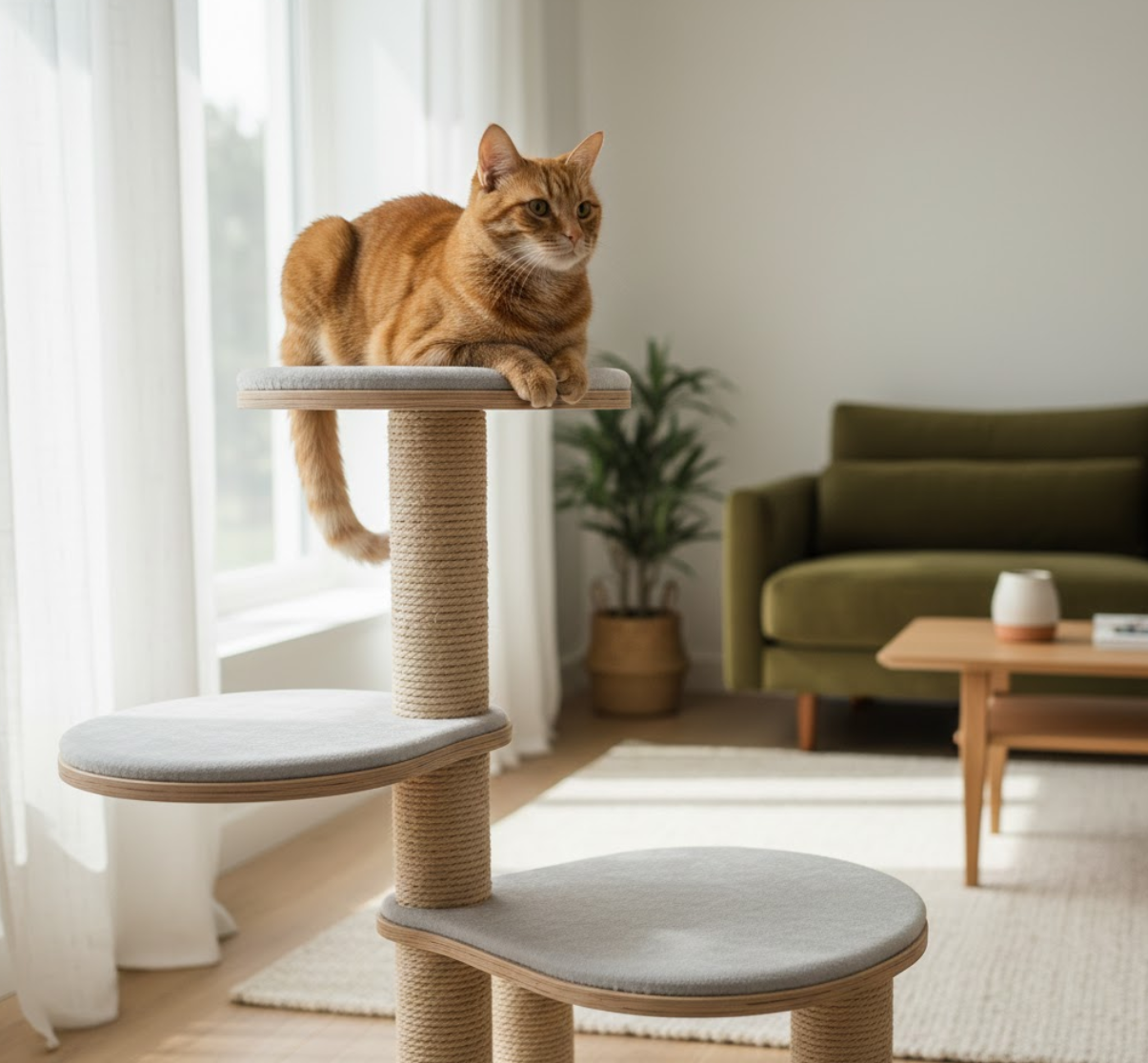 Un arbre à chat original, solide et élégant, pensé pour les grands félins et les intérieurs modernes.