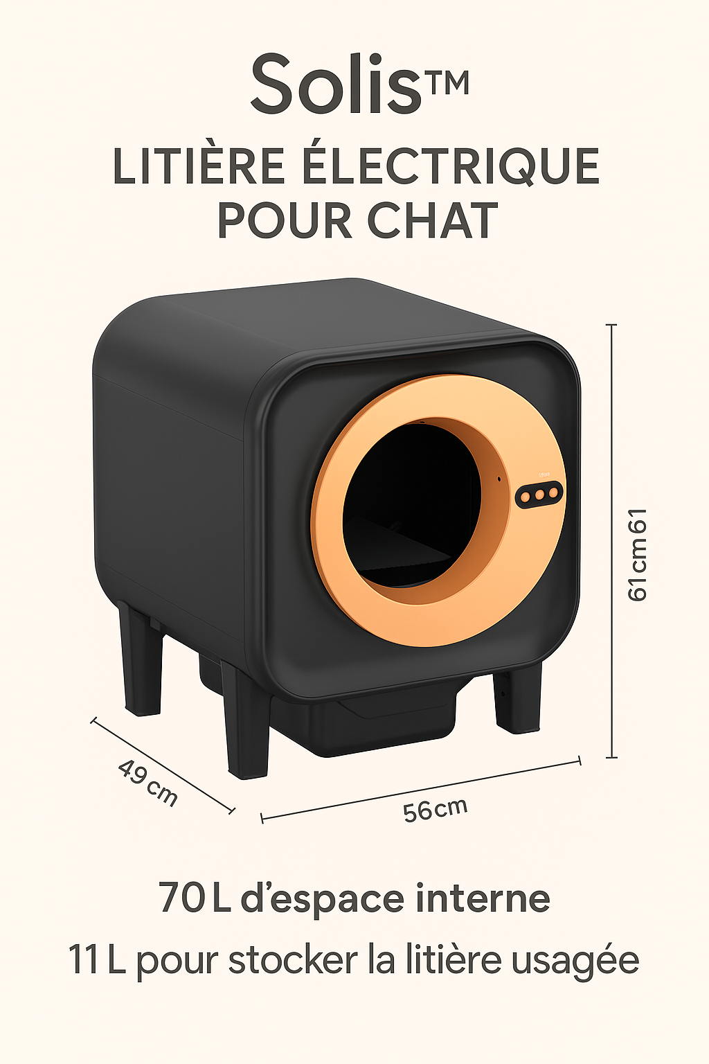 - Grande capacité – cuve de 70 L, adaptée aux chats de toute taille